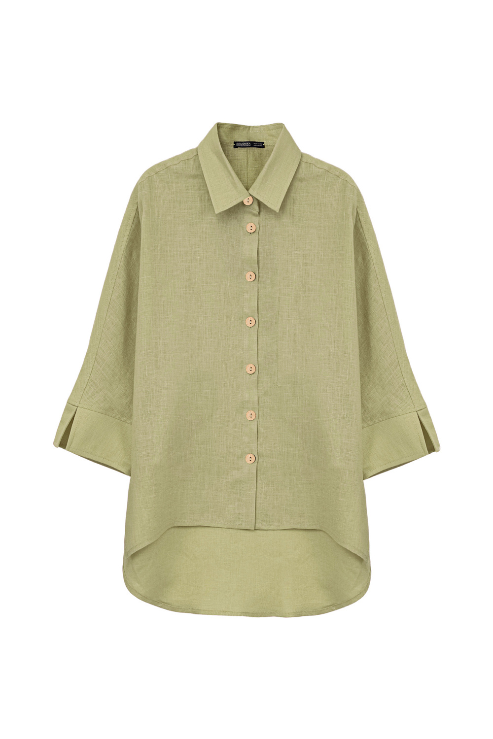 100% linen shirt with long back. Loose silhouette model with slits at the cuffs and sides. Patch pocket on the chest.