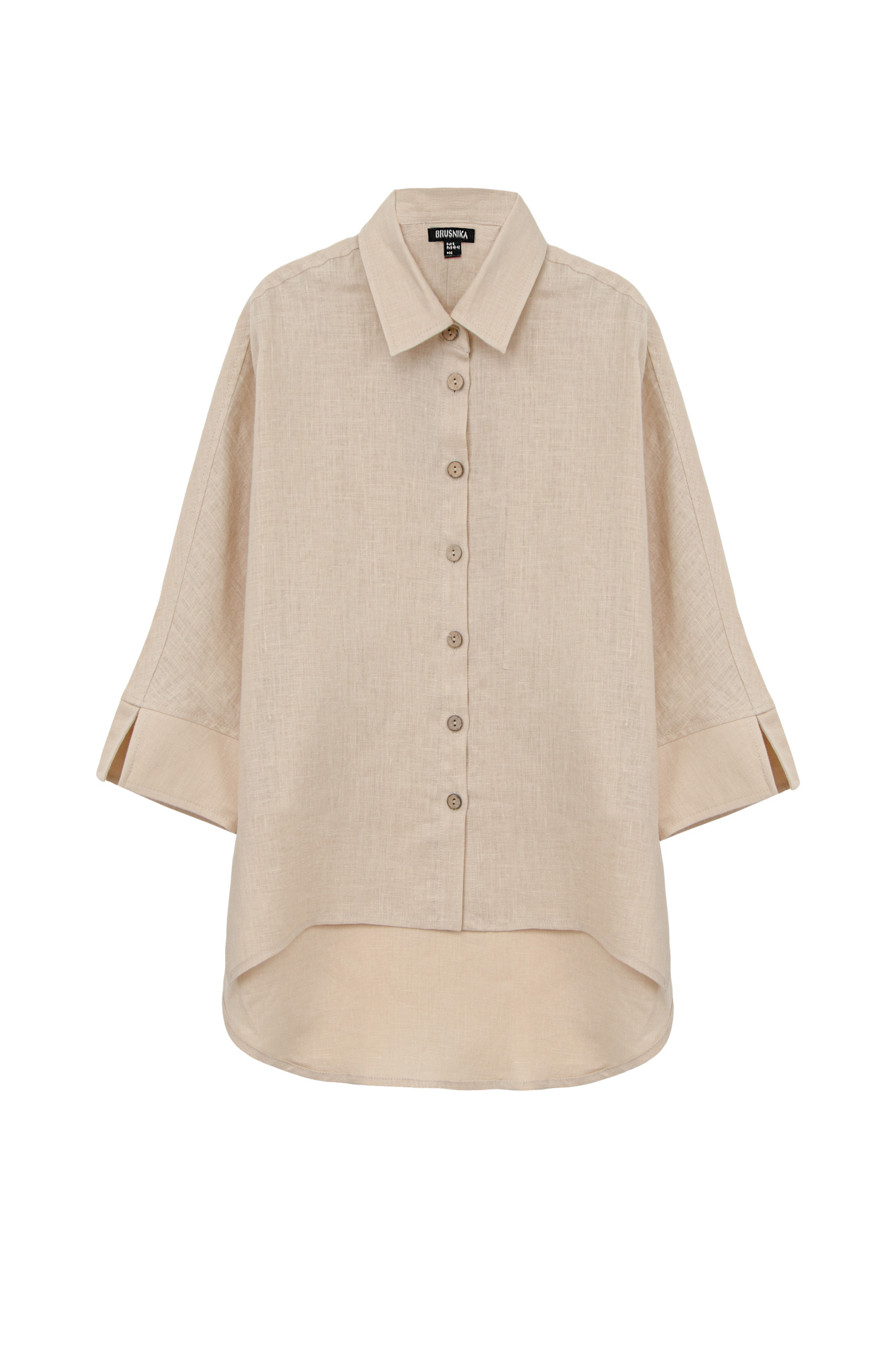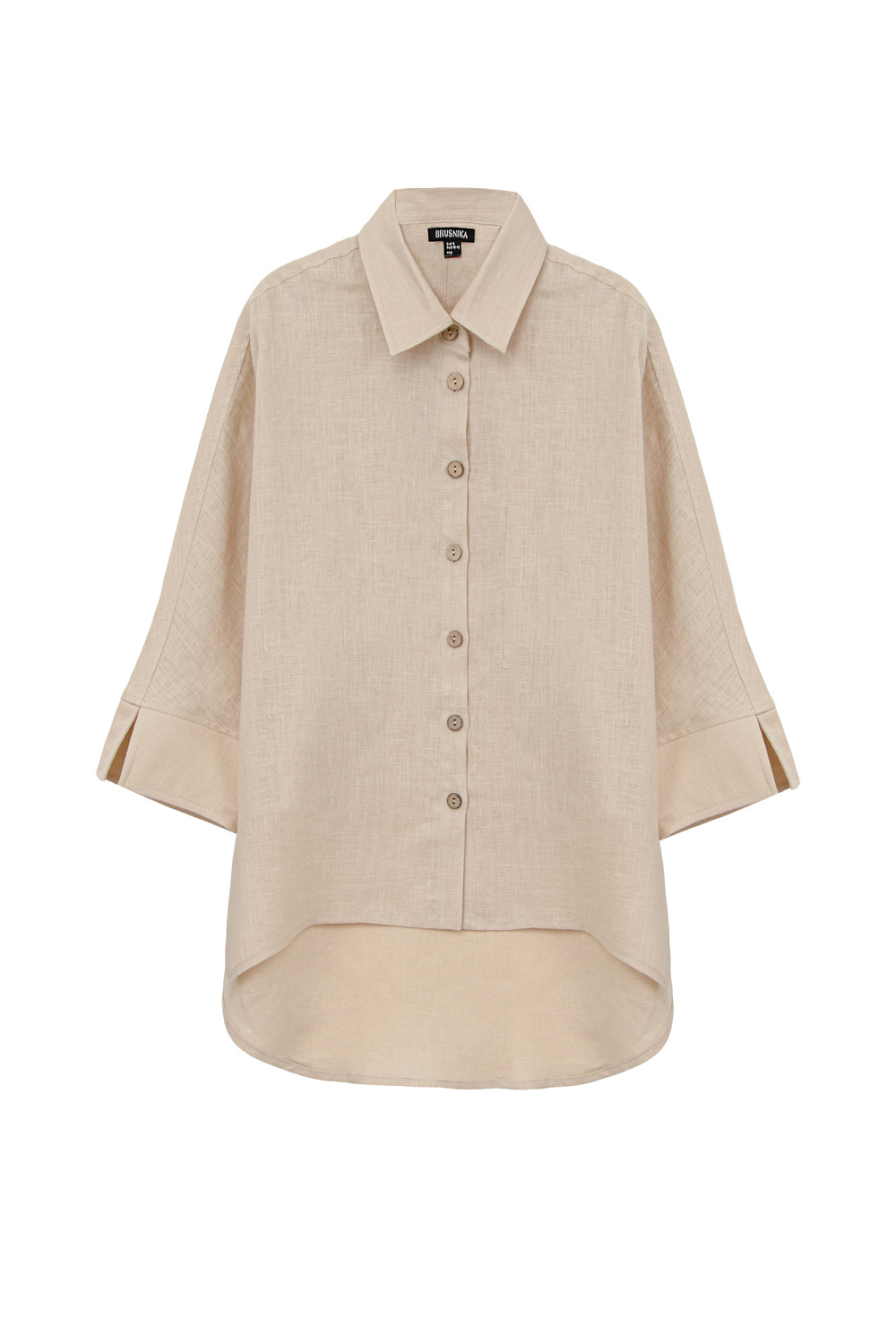 100% linen shirt with long back. Loose silhouette model with slits at the cuffs and sides. Patch pocket on the chest.