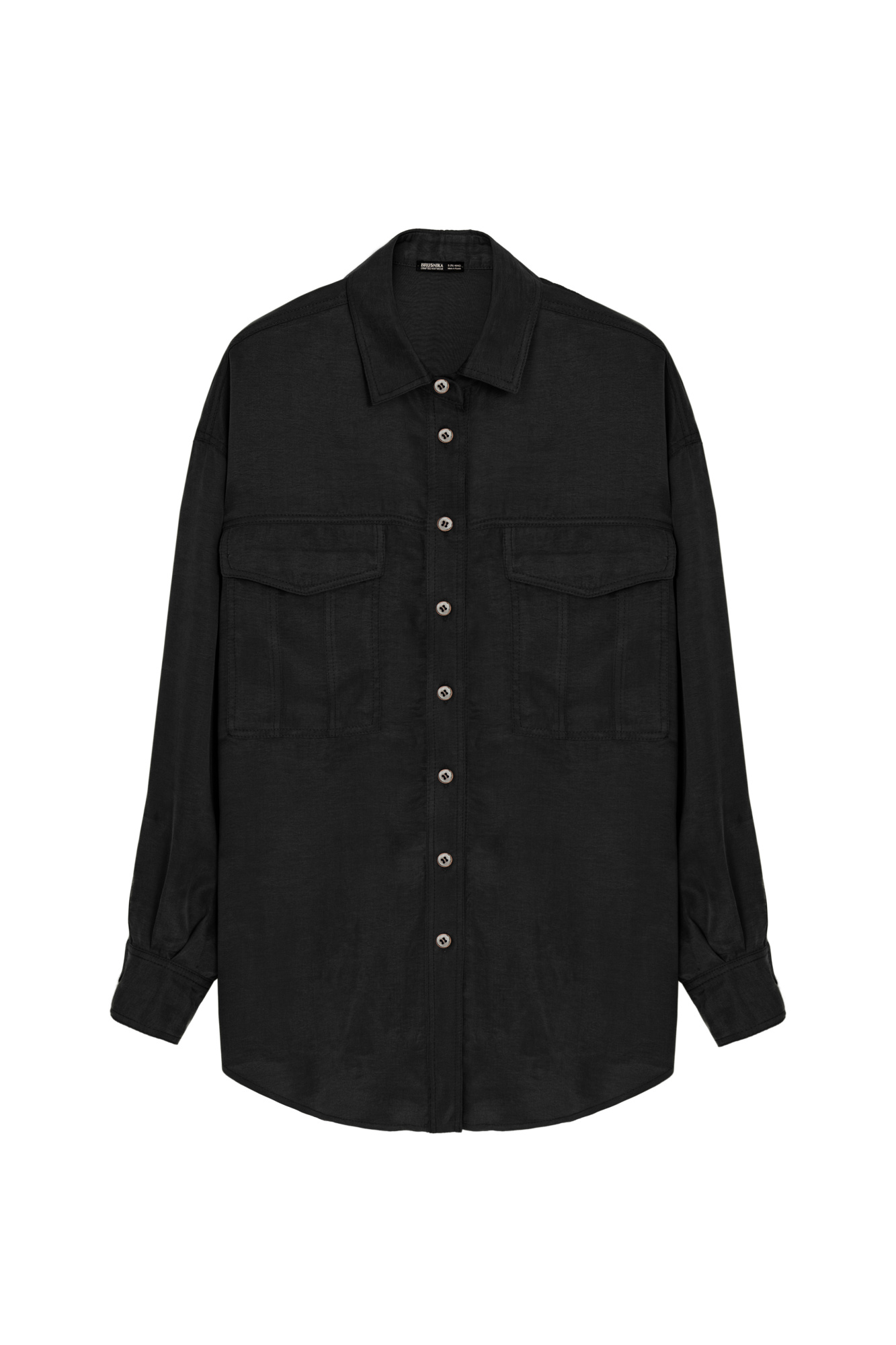 Basic 100% cupra shirt with patch pockets at the chest, dropped shoulders and slightly rounded hem. You can complete the look with trousers made of the same material.
