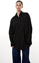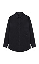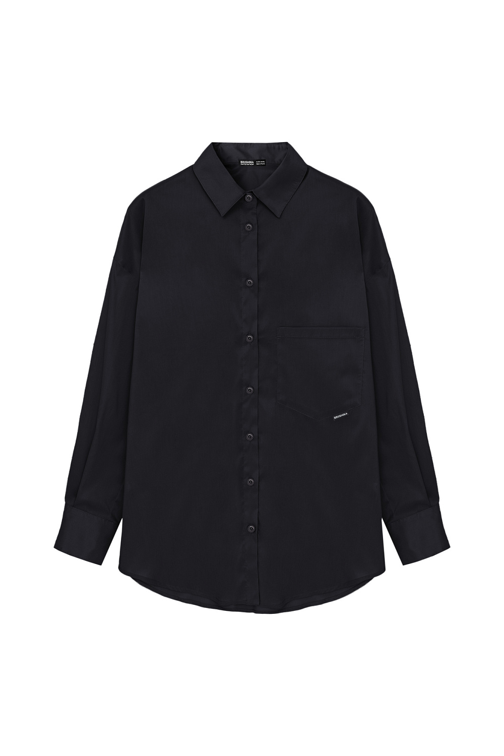 Oversized shirt with patch pocket and branded tag. Loose fit silhouette, long sleeves with cuffs and a rounded hem.