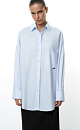 Oversized shirt with patch pocket and branded tag. Loose fit silhouette, long sleeves with cuffs and a rounded hem.