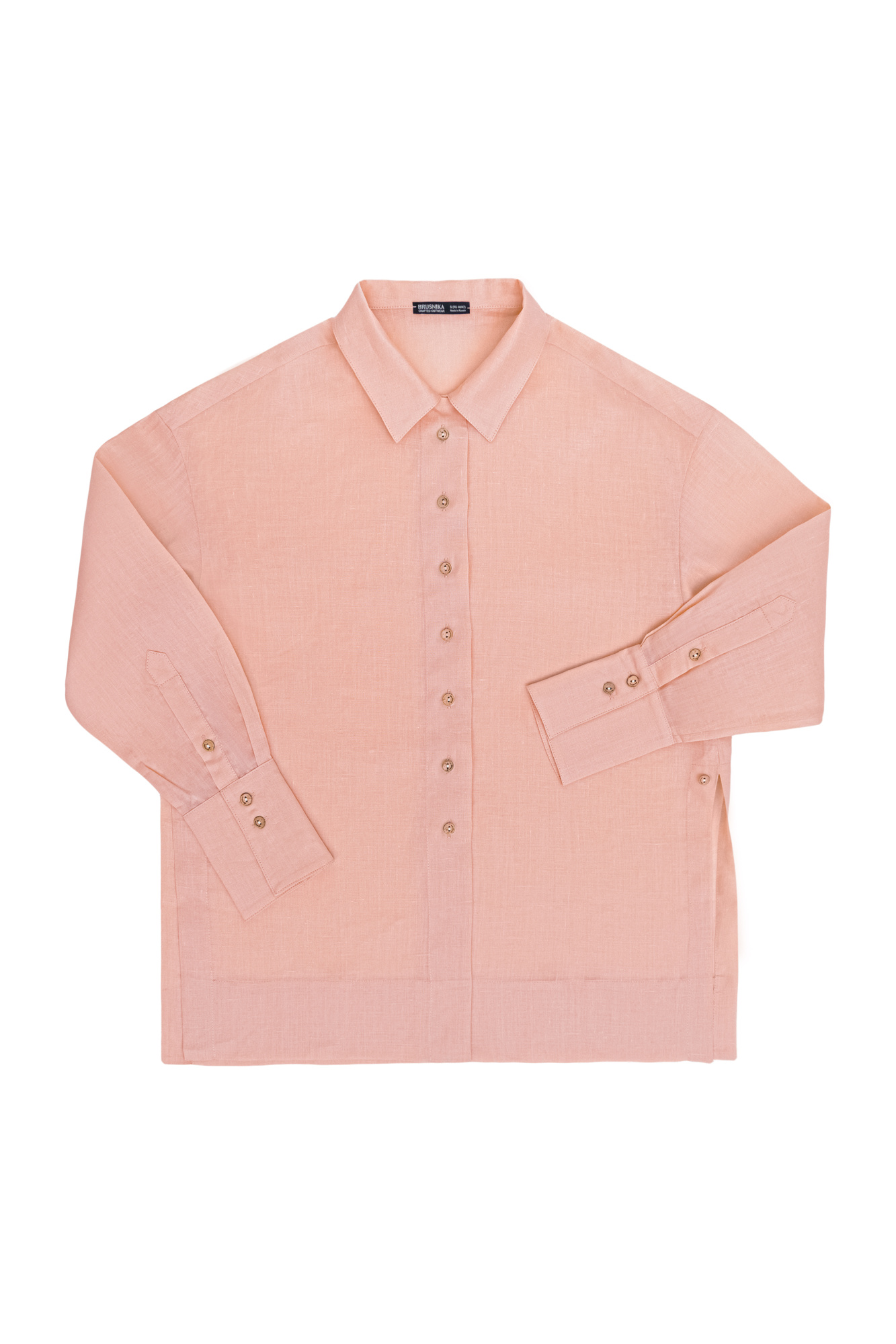 Semi-sheer shirt made from 100% nettle. Features loose silhouette with classic collar and cuffs. Button closure. Nettle fabric is very lightweight, does not electrify, and its natural origin emphasizes the environmental friendliness of this model
