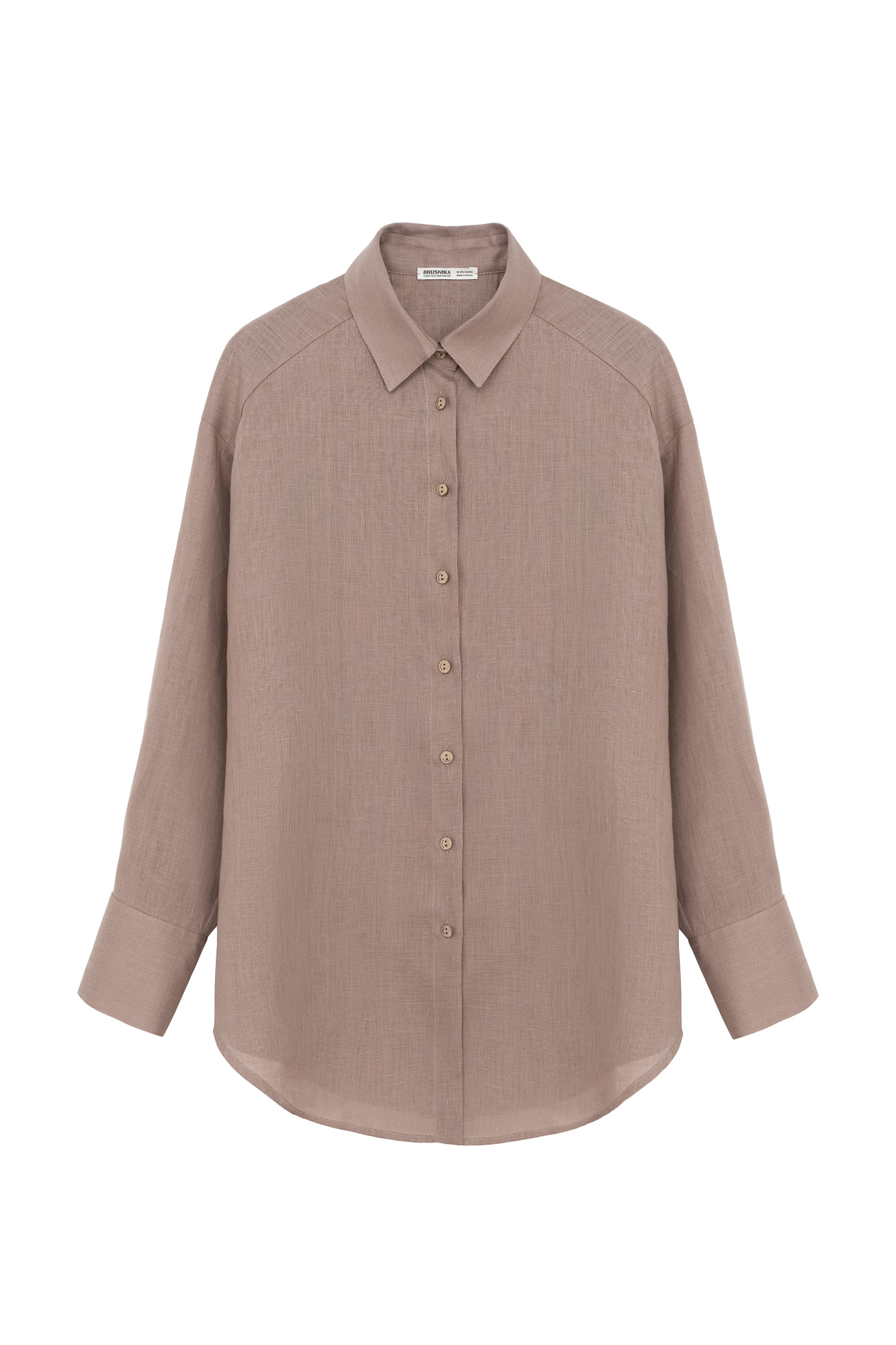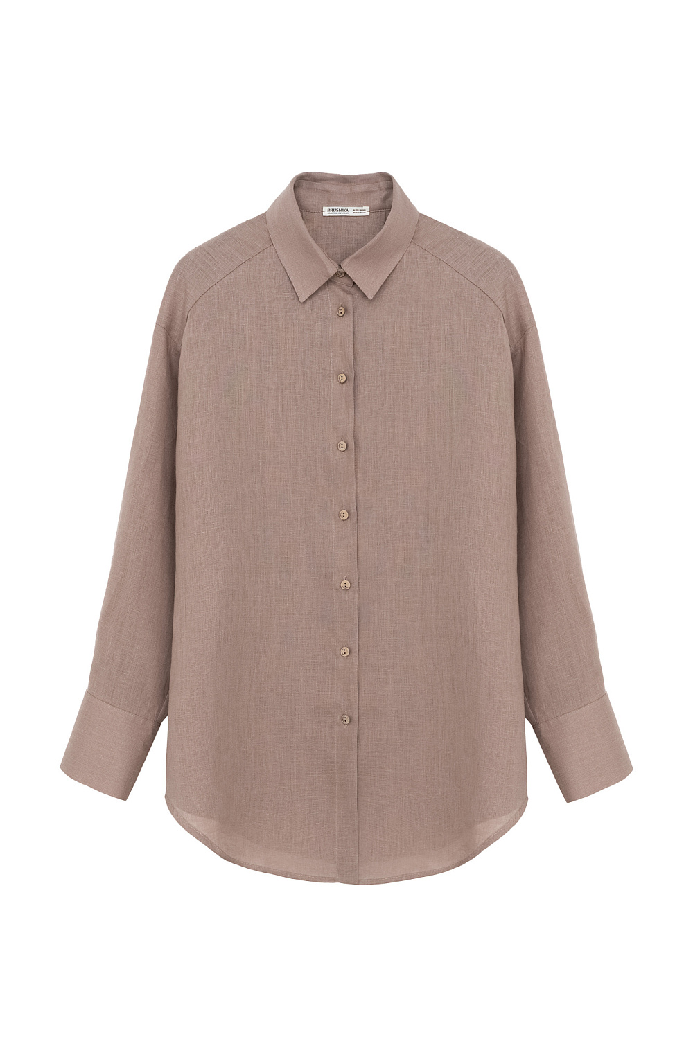 Classic 100% linen shirt. Turn-down collar, long sleeves with button cuffs and a rounded hem. Button closure.