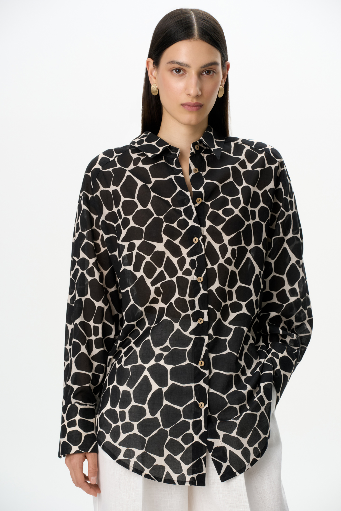 Loose-fit shirt with animal print, dropped shoulders and a rounded hem.