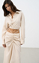 Cropped shirt with ties. Loose fit silhouette with dropped shoulders, buttoned cuffs. You can complete the look with a matching skirt.