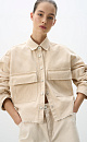 100% cotton cropped corduroy shirt. The model has a loose fit with dropped shoulders, a classic turn-down collar and two patch pockets with flaps. The bottom of the product is made with an imitation of a raw edge. Button closure. No lining.