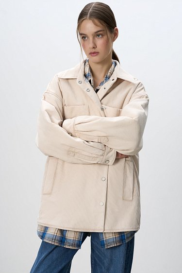 100% cotton checkered shirt. The model has a straight cut, with dropped shoulders, long sleeves, a classic turn-down collar, two chest pockets, one of them with a flap. The cuffs and hem of the product are made with a raw edge effect. Button closure.