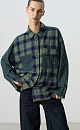 100% cotton checkered shirt. The model has a straight cut, with dropped shoulders, long sleeves, a classic turn-down collar, two chest pockets, one of them with a flap. The cuffs and hem of the product are made with a raw edge effect. Button closure.