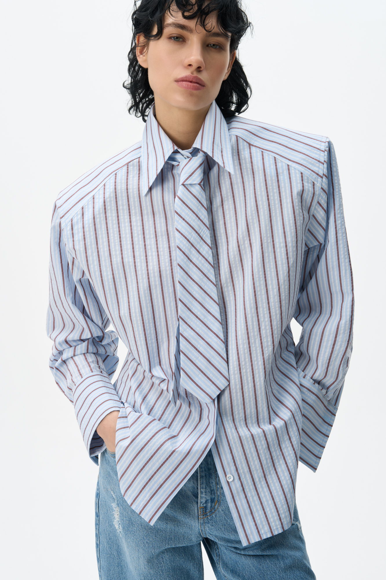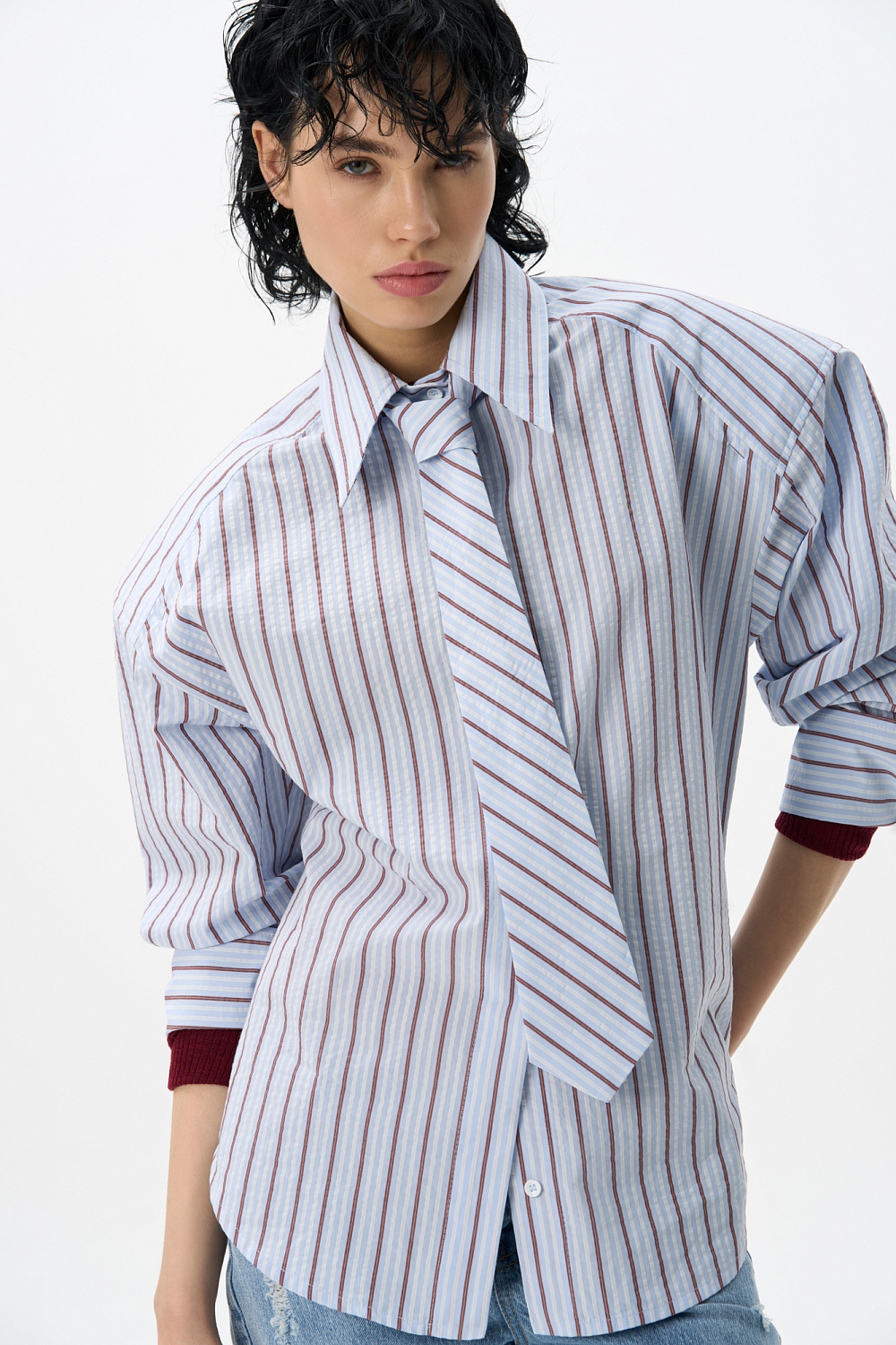 Striped shirt with shoulder pads