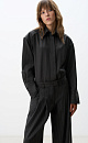 Striped wool shirt. The model has a straight fit, long sleeves, flared cuffs, a classic turn-down collar and enlarged shoulders. Button fastening under the placket.