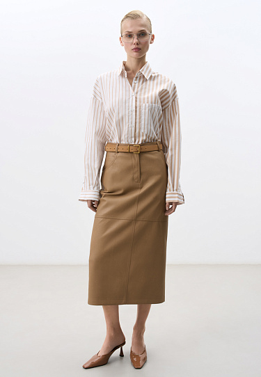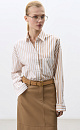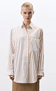 Two-tone oversized striped cotton shirt with a patch pocket on the chest. Long sleeves with cuffs, rounded hem and a box pleat at the back. Button closure.