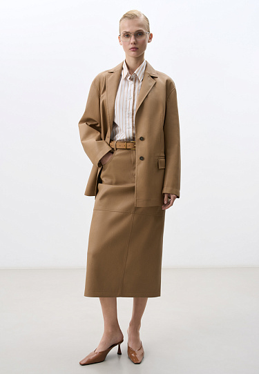 Two-tone oversized striped cotton shirt with a patch pocket on the chest. Long sleeves with cuffs, rounded hem and a box pleat at the back. Button closure.
