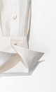 Shirt made of silk with added cotton. Straight fit model with long sleeves with cuffs, a classic turn-down collar, extended shoulders and a tie at the back. Button fastening under the placket.