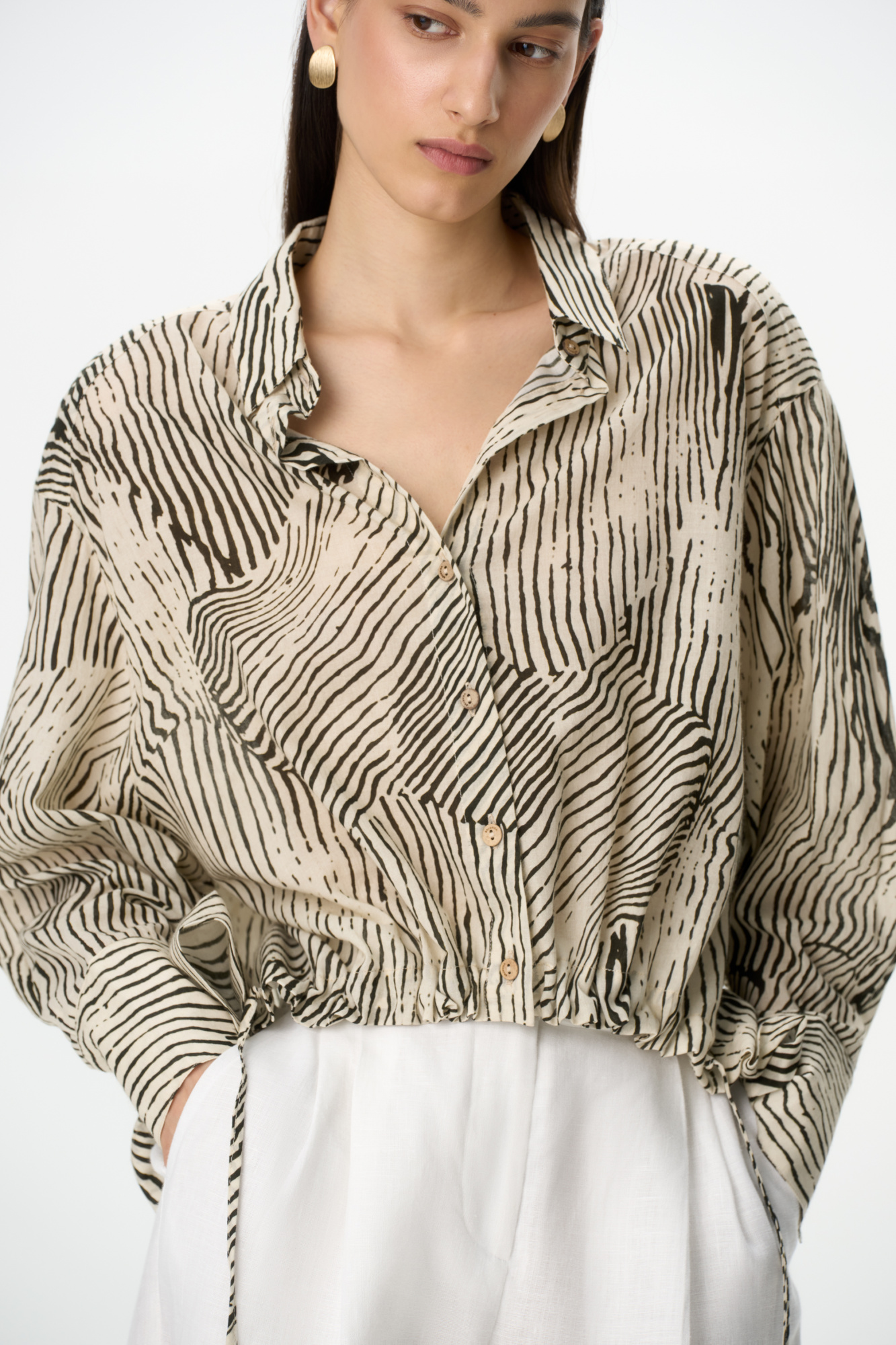 Printed 100% cotton shirt with an asymmetric hem and ties.