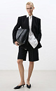 Shorts made of polyviscose with arrows. Straight cut model with side and back pockets, belt loops, zipper and button closure.