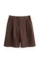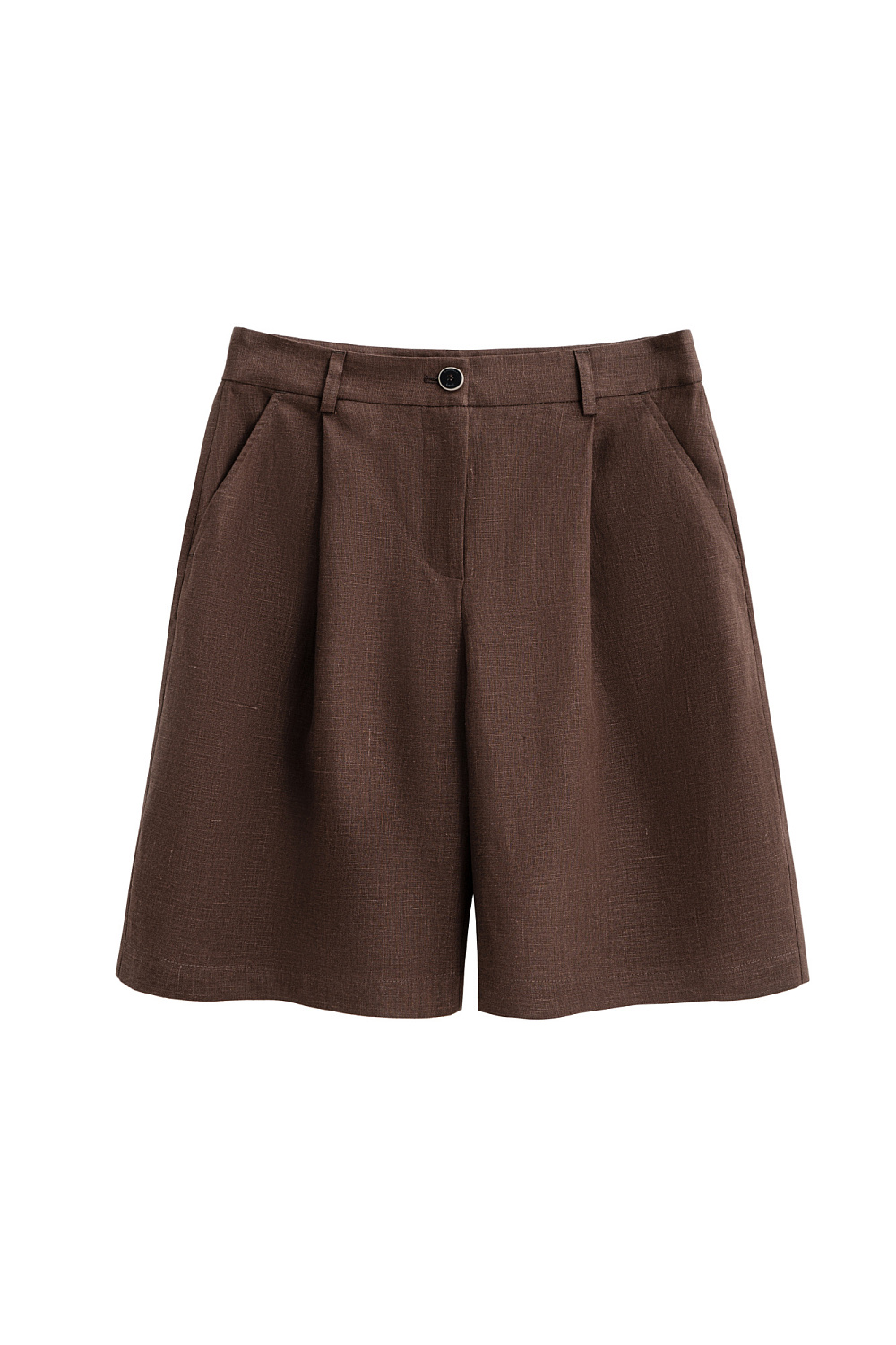 Shorts made of 100% linen. High-rise model with wide legs and pleats at the front. Two pockets front and back. Button and zip fastening. Belt loops on the waistband.