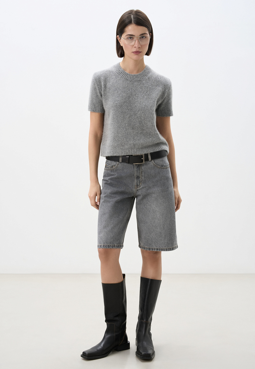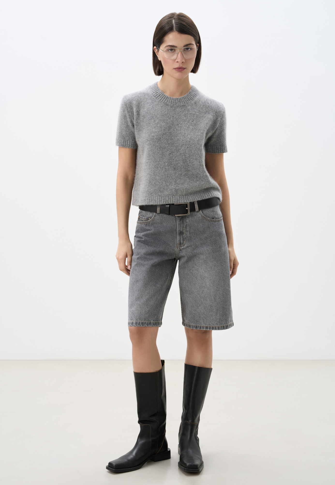 Bermuda shorts with belt loops and pockets. Front zip and metal button fastening.