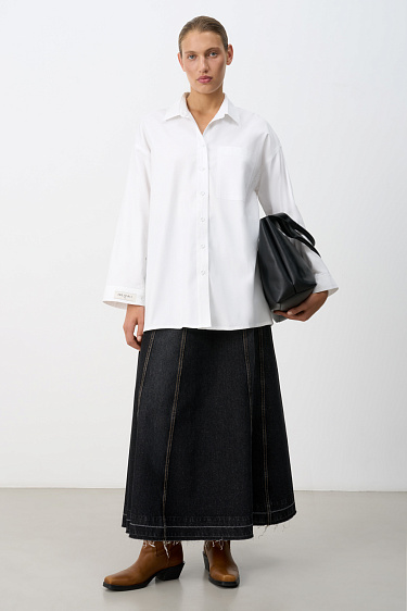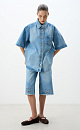 100% cotton denim bermuda shorts. The model has a wide straight cut and a low rise. The product is decorated with embroidery in the shape of hearts and decorated with fringe along the bottom edge. Fastened with a zipper and button.