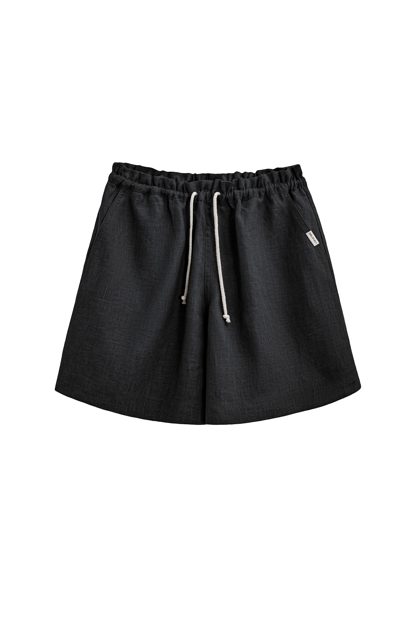 Short shorts made of 100% linen. The model has a loose fit, with a drawstring belt and side pockets.