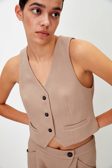 Viscose blend asymmetric shorts with side pockets. Pairs perfectly with a jacket or vest.