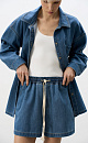 Denim shorts made of 100% cotton. The model has a straight cut, mid-rise, with a wide belt and pockets. The product is made on a drawstring.