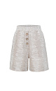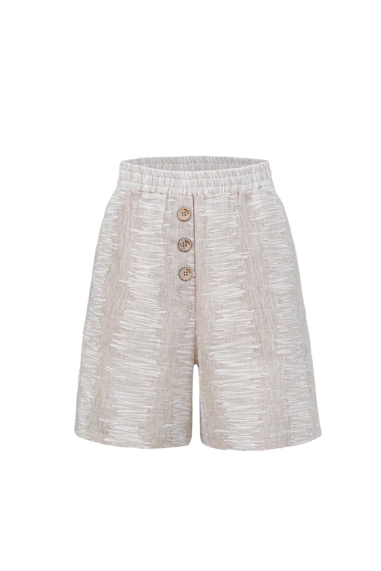 Textured linen shorts. Straight-fit model with an elasticated waistband, two pockets and button decoration.