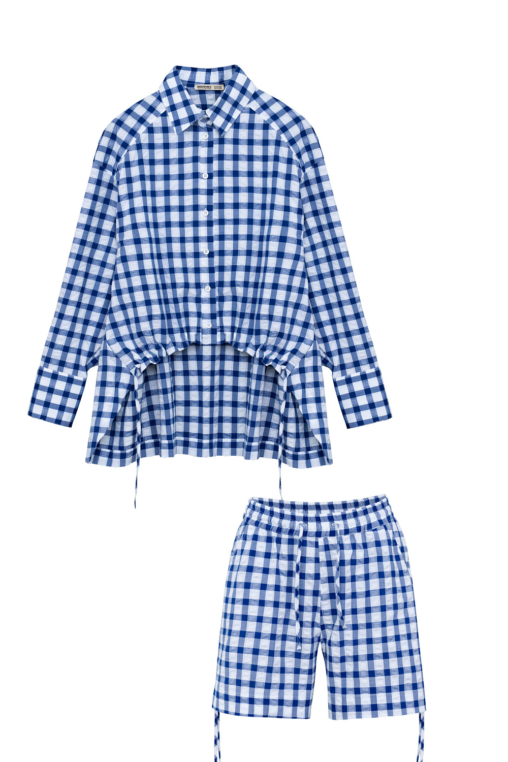100% cotton set consisting of a shirt and shorts with pockets on the sides