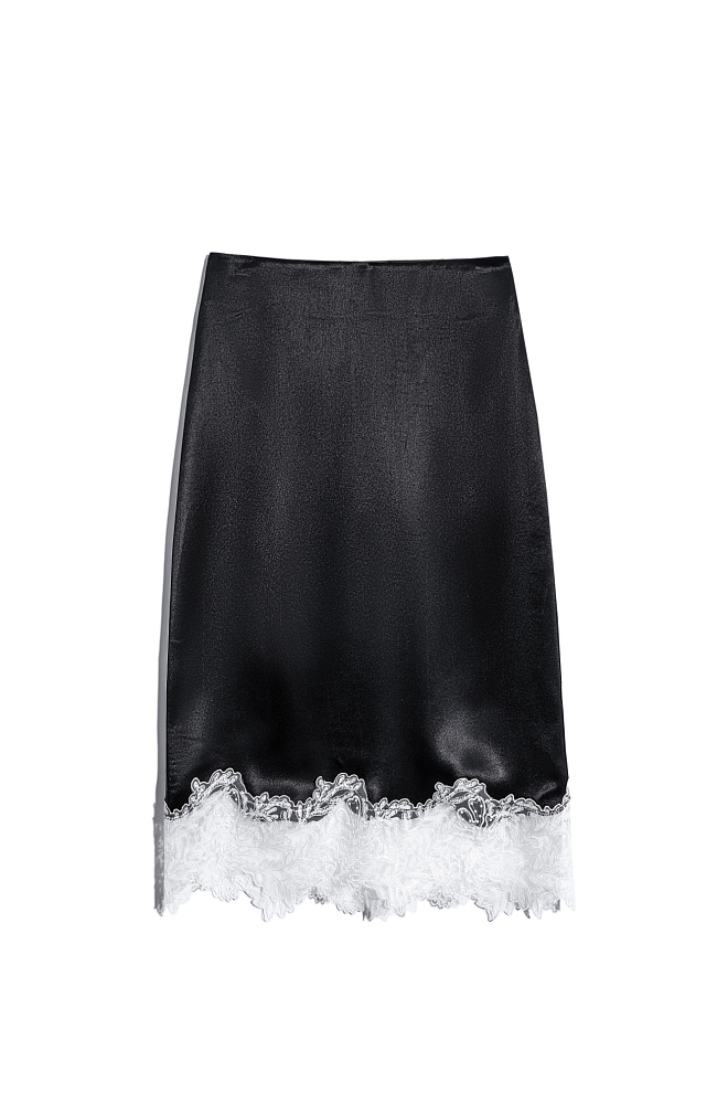 Satin midi skirt with lace