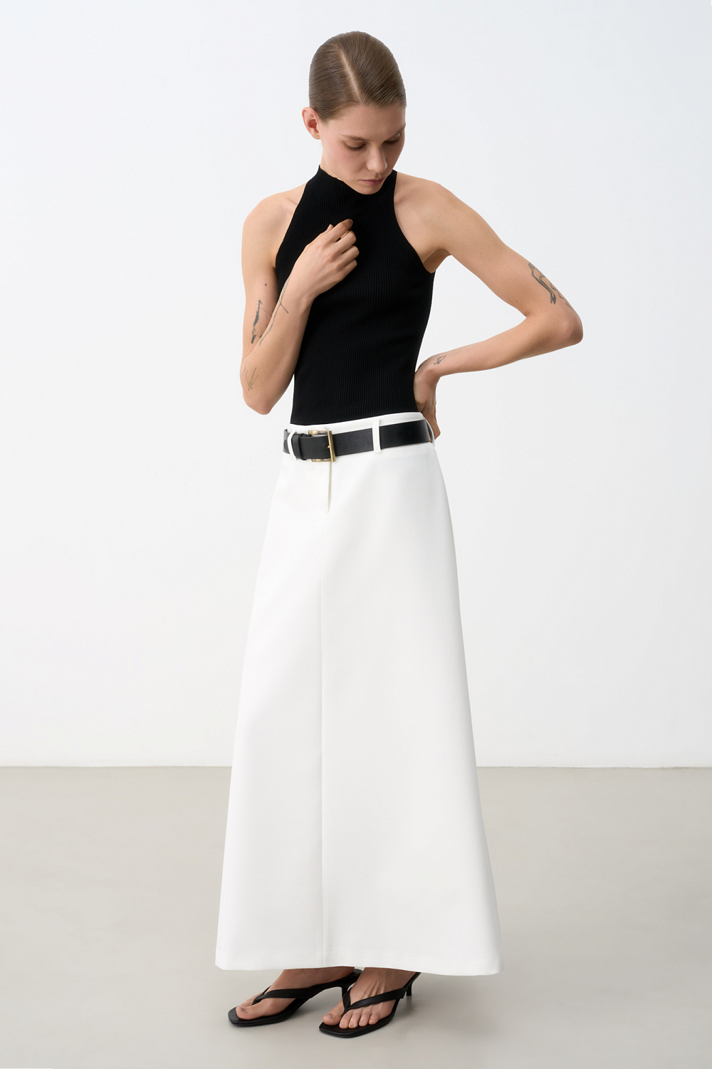 Viscose maxi skirt. A-line design with belt loops and a zipper and hook-and-eye closure.