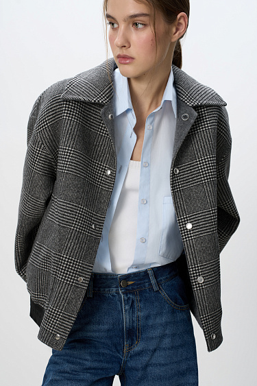 Midi length wool skirt. A-line model with large oblique pleats at the front. Zip fastening at the back. The product is unlined.