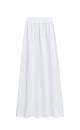Maxi-length knitted skirt made of cotton with viscose. A-line model with a wide elastic waistband. The product is decorated with small sequins.