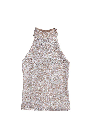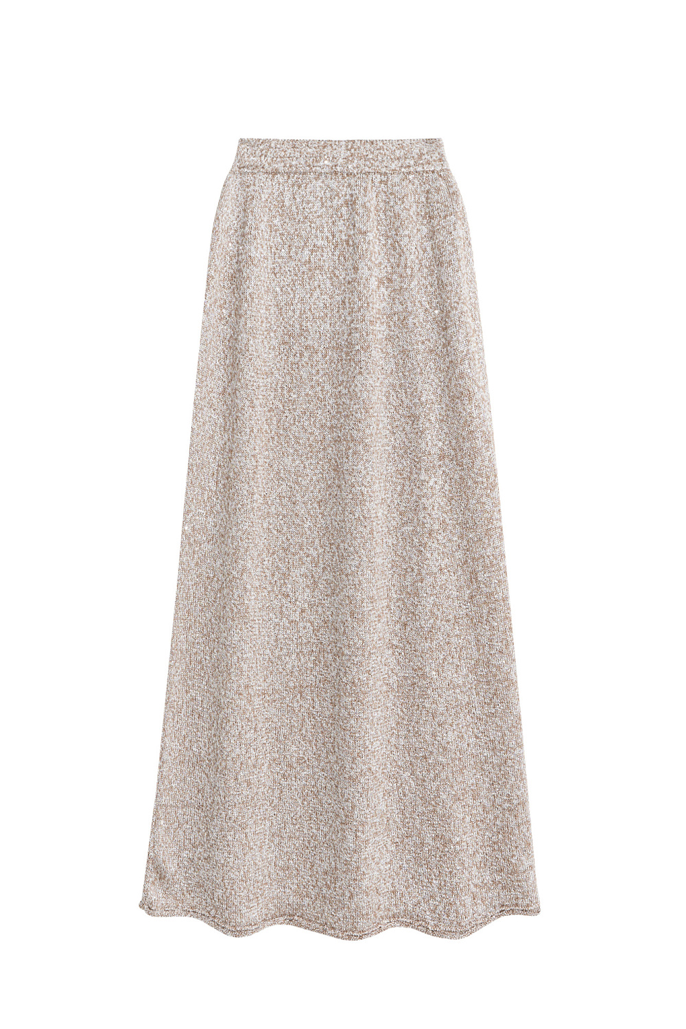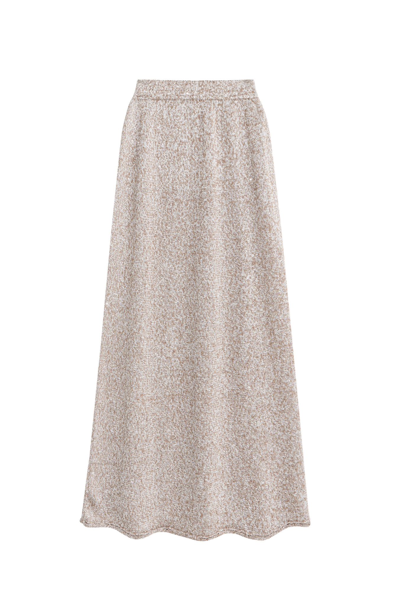 Maxi-length knitted skirt made of cotton with viscose. A-line model with a wide elastic waistband. The product is decorated with small sequins.