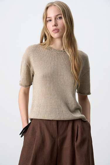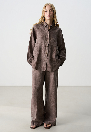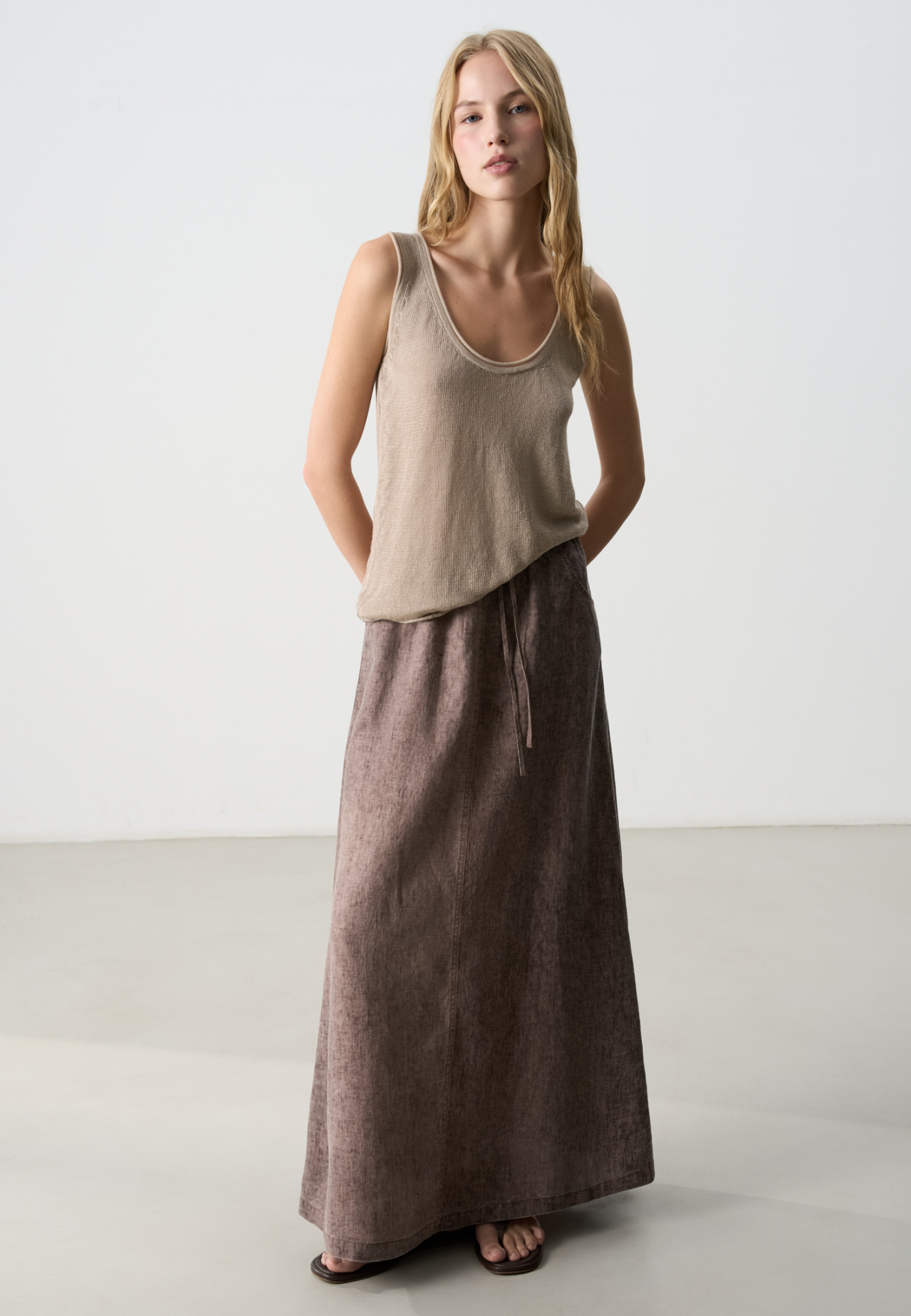 Skirt made of 100% linen, maxi length. A-line model with two side pockets. The product is made with a belt with a drawstring.