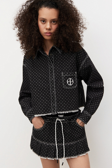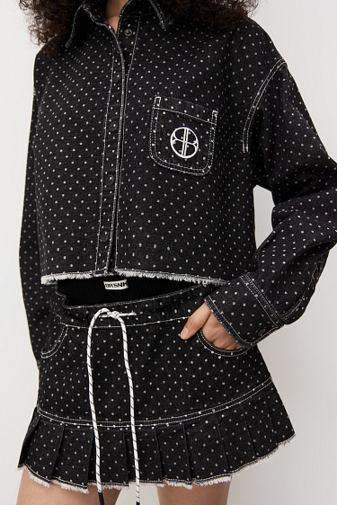 Polka Dot Denim Mini Skirt