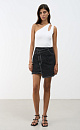 Denim skirt with asymmetric fastening and leopard print.