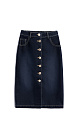 Midi-length skirt made of flocked denim - 100% cotton with an imitation velvet texture. Straight silhouette model with pockets and decorative button closure.