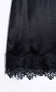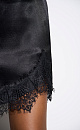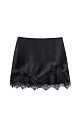 Mini length satin skirt. Model with an asymmetrical hem decorated with lace. Concealed zip fastening.