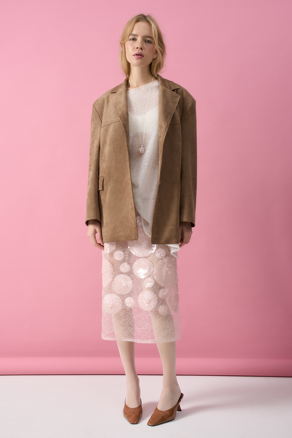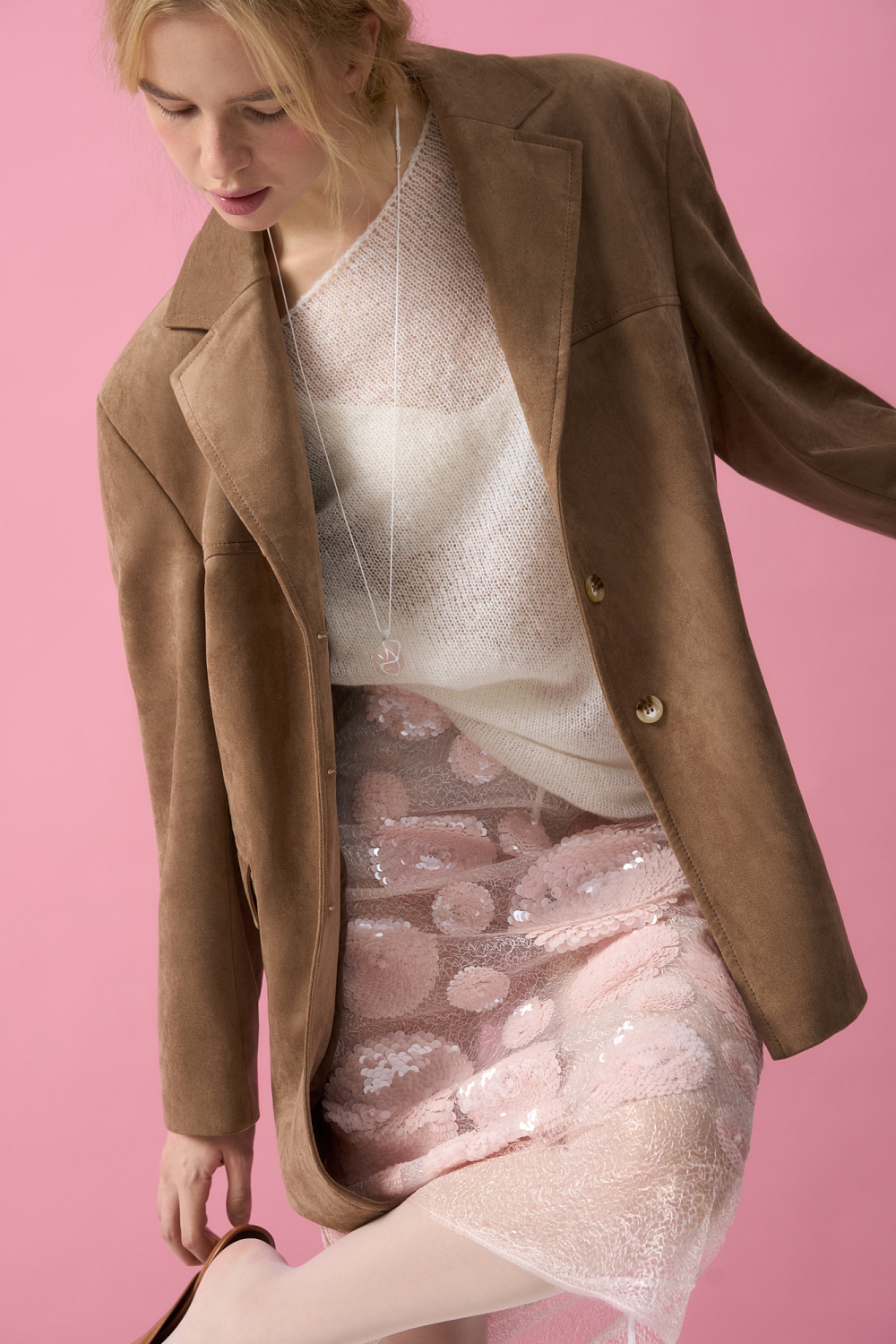 Midi-length skirt with geometric patterns embroidered with sequins. Concealed zip fastening. The product is unlined.