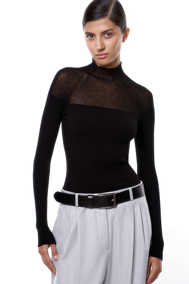 Midi-length skirt with eco-leather lace. Fitted silhouette with zip fastening at the back. The product is lined.