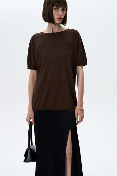 100% viscose satin skirt with a slit and zip fastening.