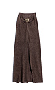 Maxi-length knitted skirt made of linen with lurex. Model with a high slit at the front, a roll at the hem and an accent element at the waistband.