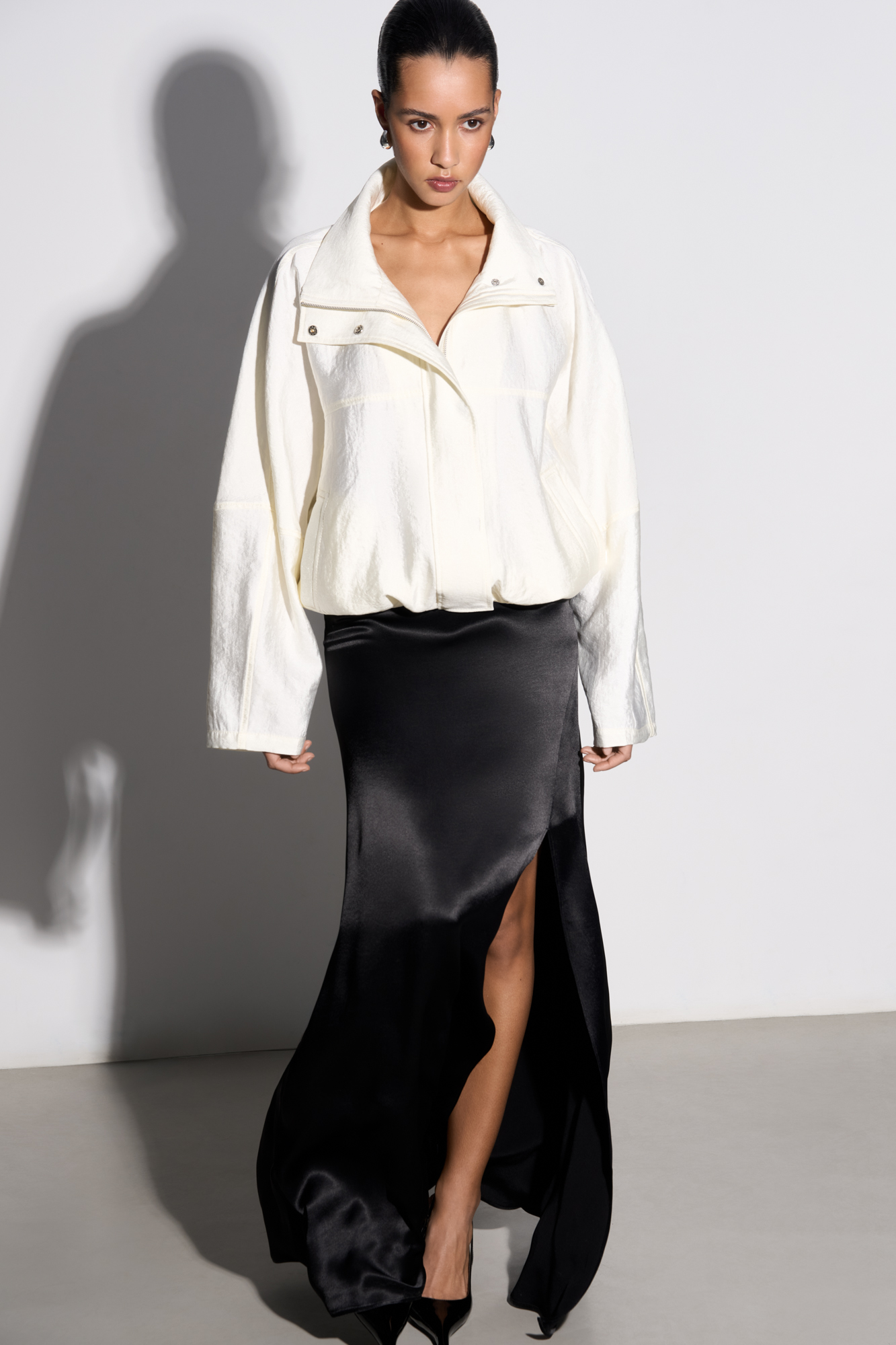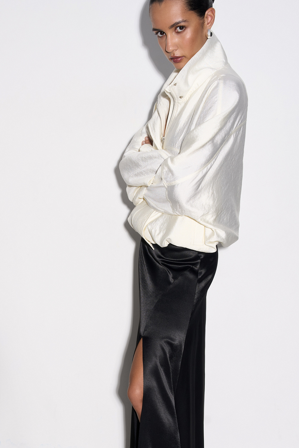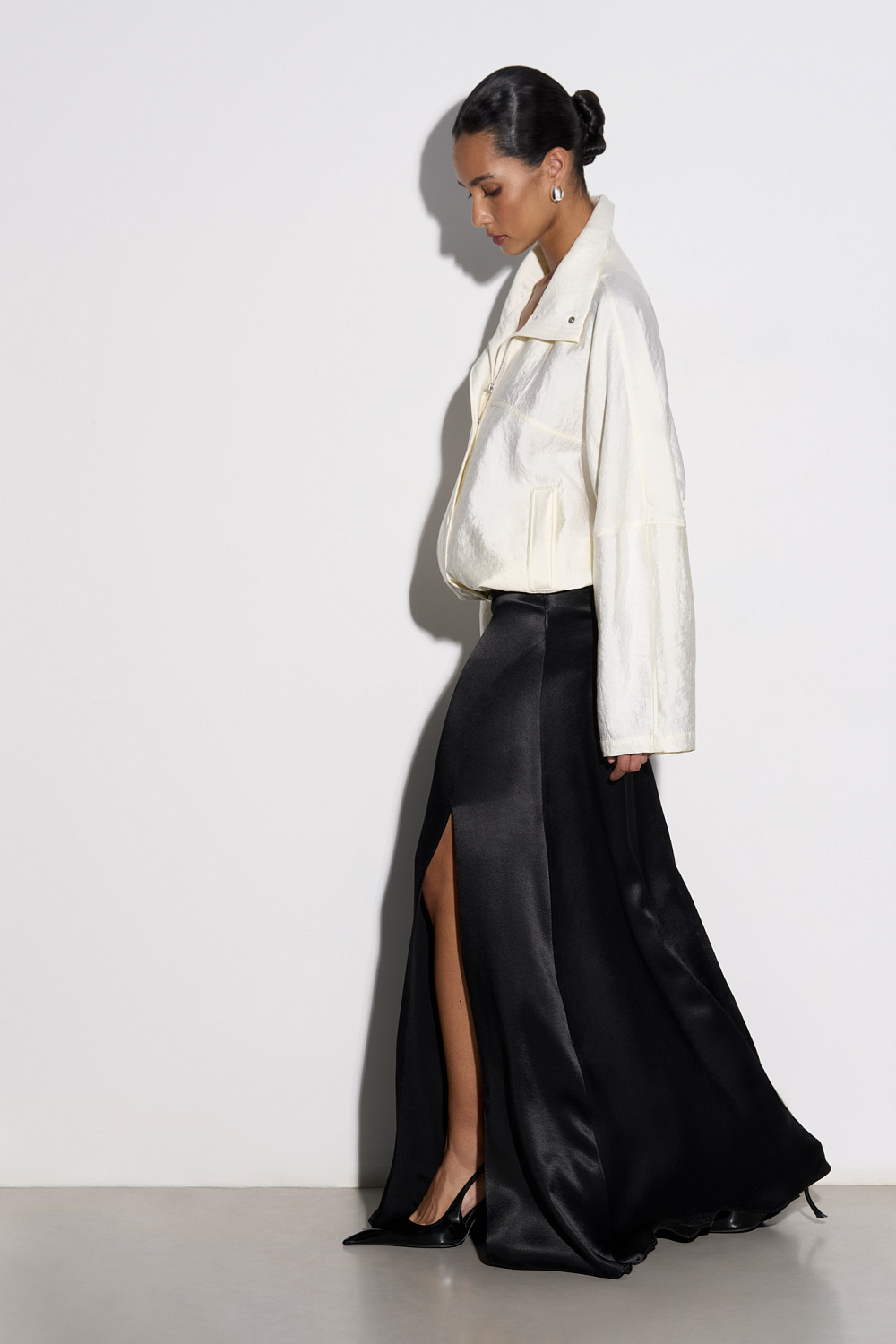 Slit satin skirt
