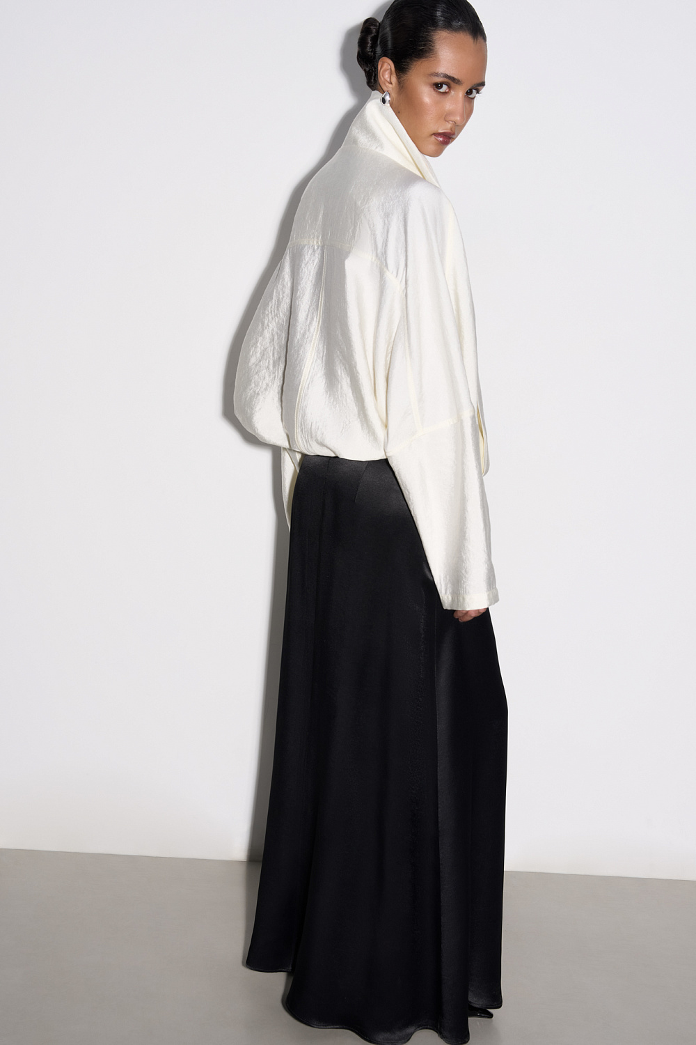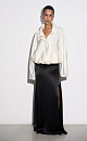 100% viscose satin skirt with a slit and zip fastening.