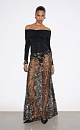 Maxi length skirt with floral patterns embroidered with sequins and beads. Concealed zip fastening. The product is unlined.
