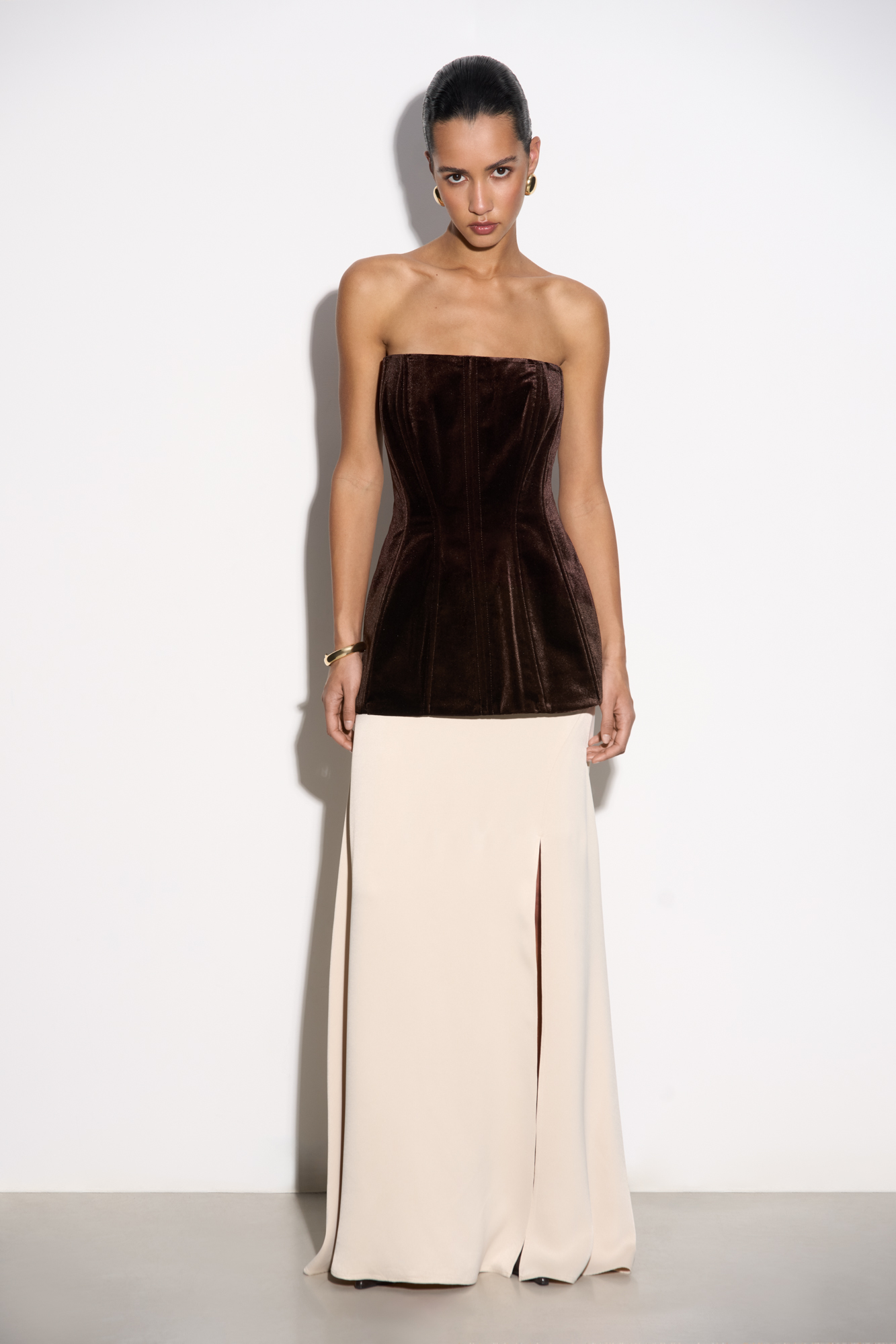 100% viscose satin skirt with a slit and zip fastening.