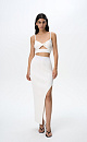 Knitted viscose maxi skirt with a side slit and elastic ribbed waistband. Pairs perfectly with an open back top.