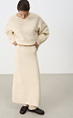 Wool blend knit maxi skirt with a slight flare at the hem and an elastic ribbed waistband. Pairing with a jumper or cardigan in the same style.