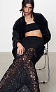 Italian lace maxi length skirt with a slit at the back and a translucent hem. Fastens at the back with a hidden zipper. You can complete the look with a lace crop top.