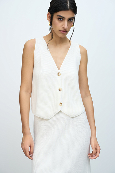 Knitted maxi skirt in a wool blend. Relaxed silhouette with elastic ribbed waistband. You can complement the look with a vest in the same style.