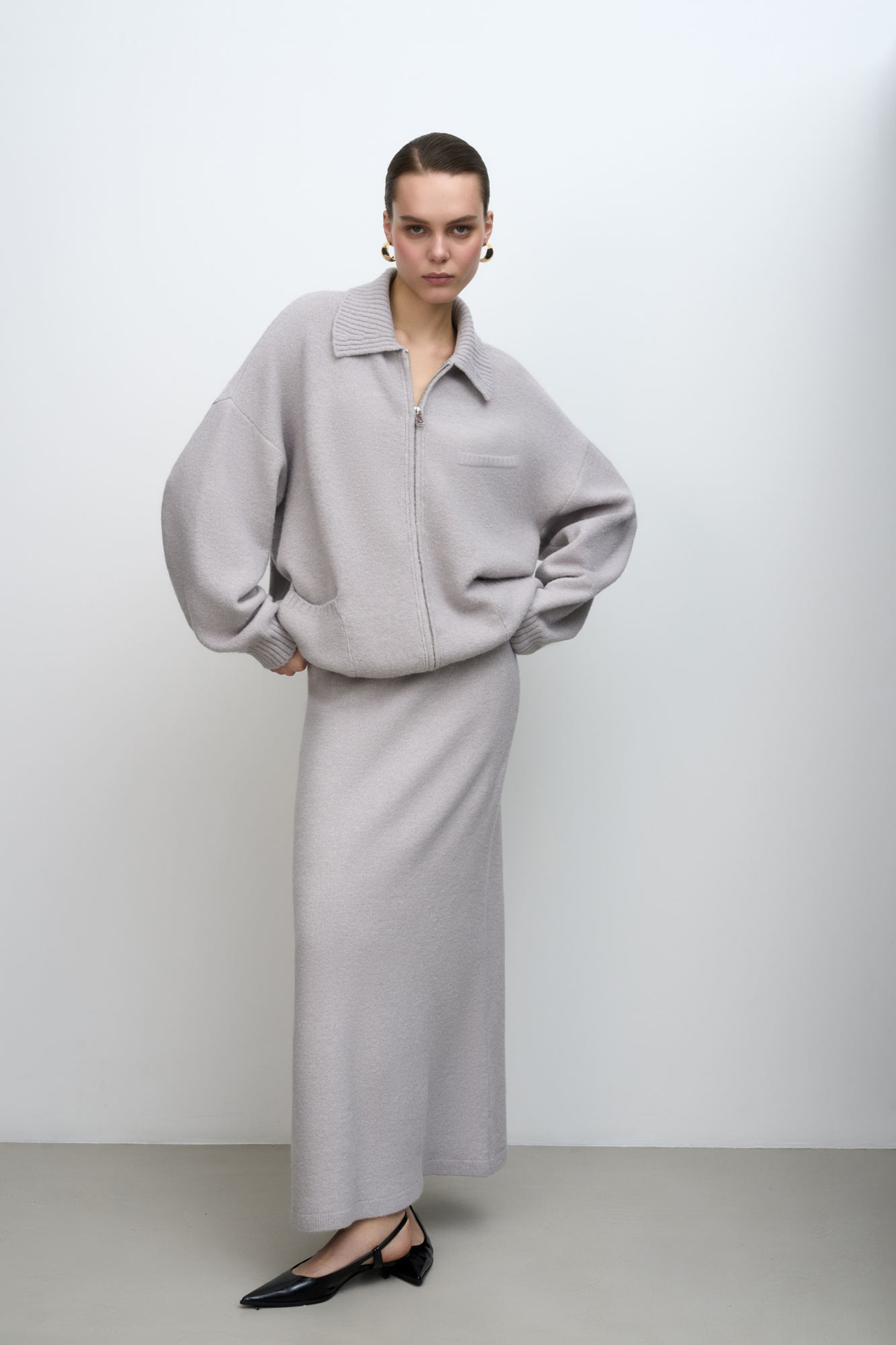 Knitted maxi skirt in a wool blend. A-line silhouette with elastic ribbed waistband